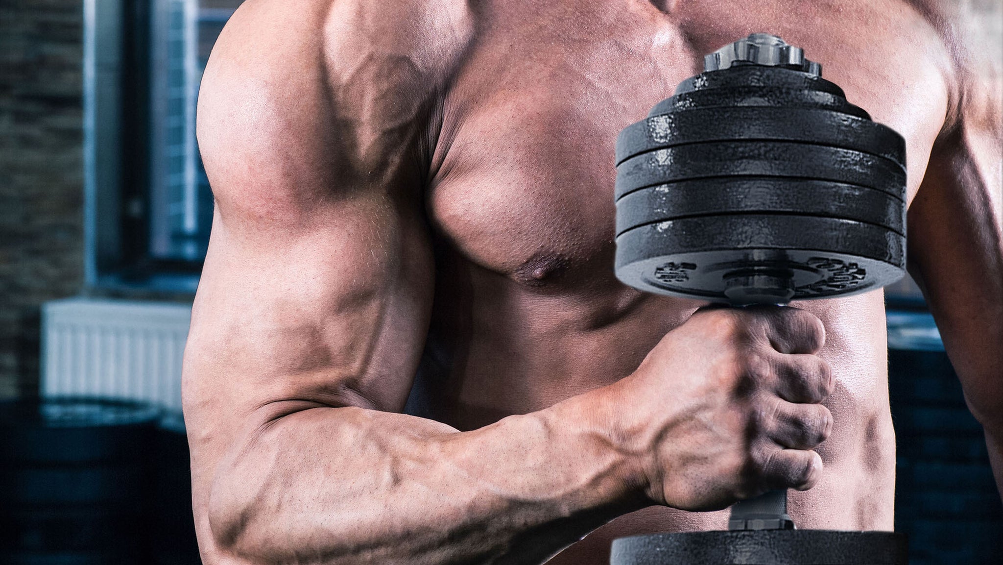 ADJUSTABLE SET OF 2 DUMBBELLS - 5 lbs to 100 lbs in 5-lbs increments. Includes TWO 15.75”x1.15” handles, SIXTEEN 10-lb plates, FOUR 5-lb plates, FOUR 2.5-lbs Plates, and FOUR Collars...